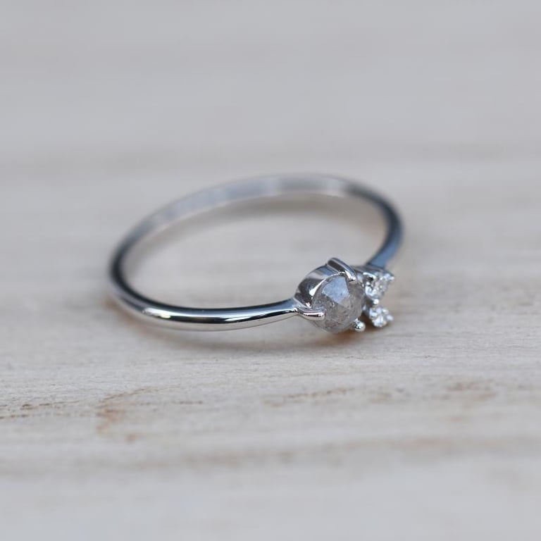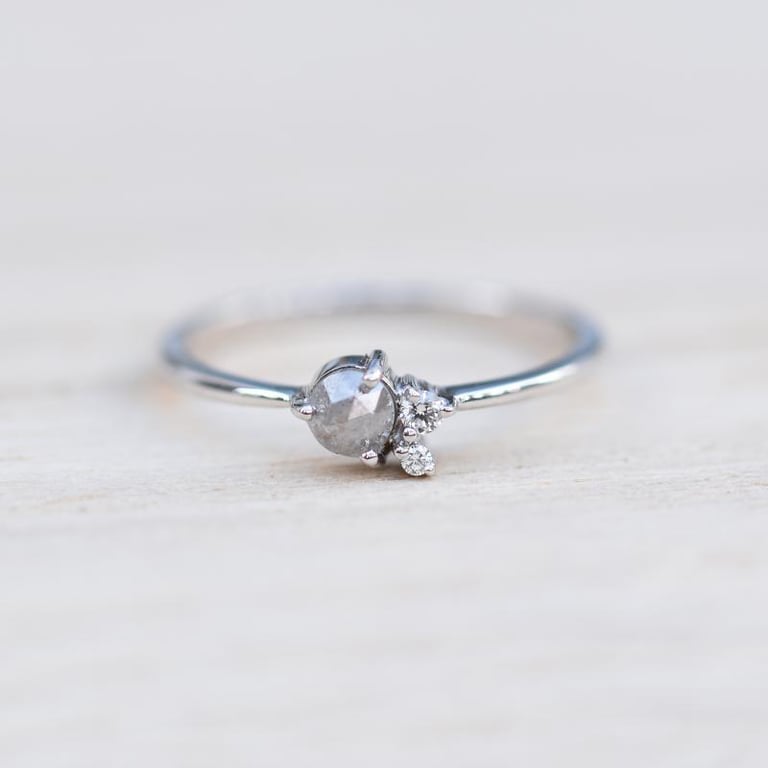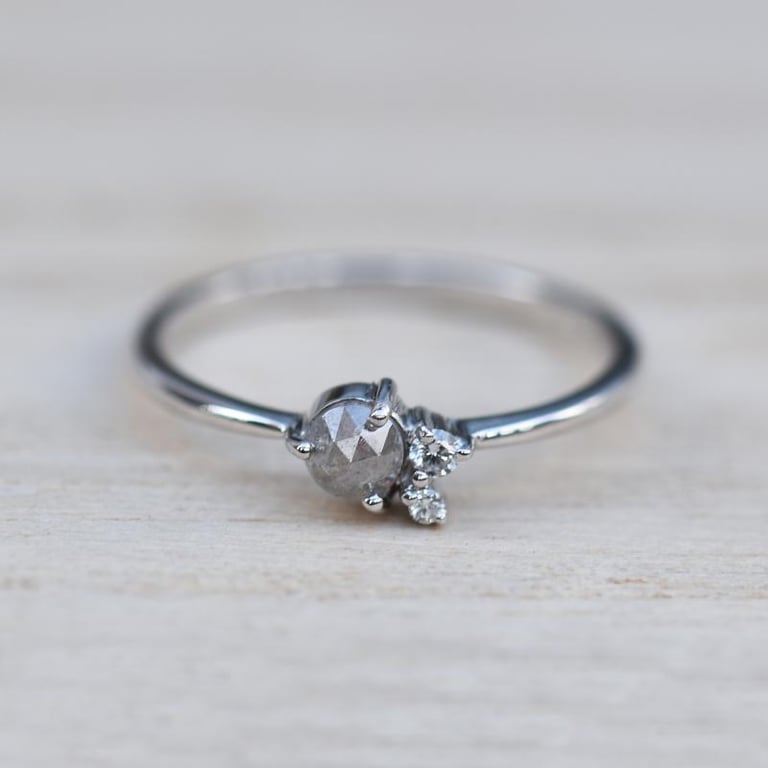 Goldring mit Salt'n'Pepper Diamant und Diamanten Marine