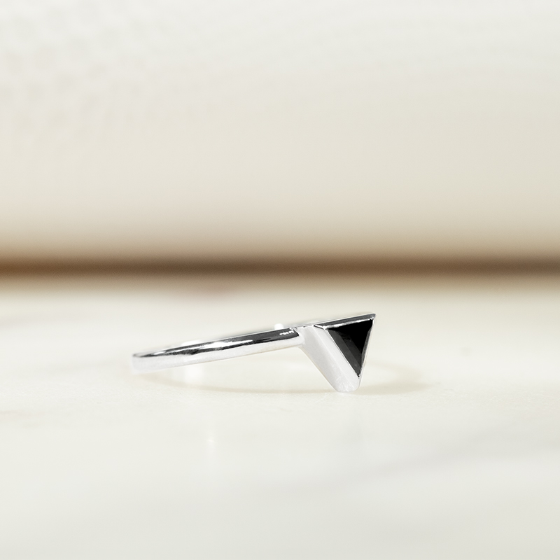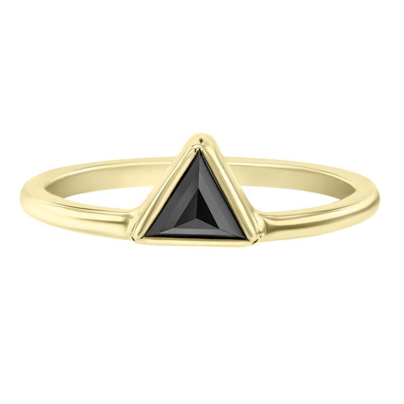 • der goldene Ring mit einem schwarzen Trillion-Diamant ist ein elegantes Accessoire für jede Frau