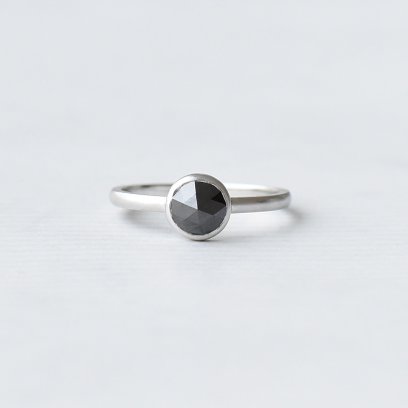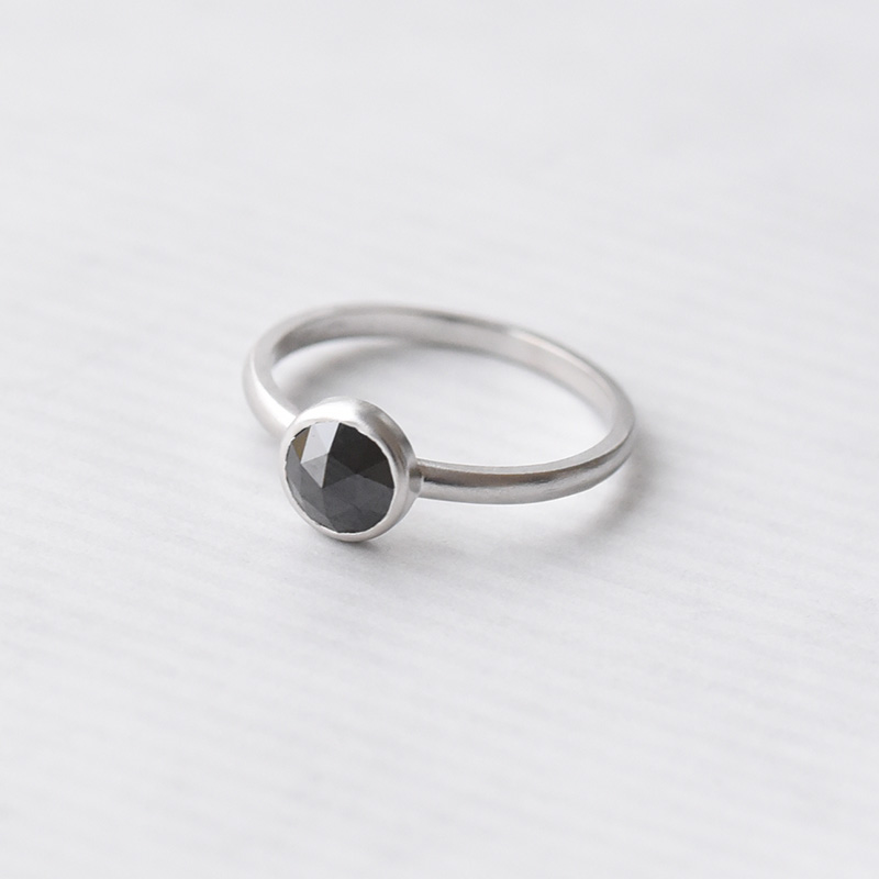 • der Ring wird durch einen schwarzen Diamanten im unkonventionellen Rosenschliff dominiert