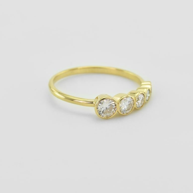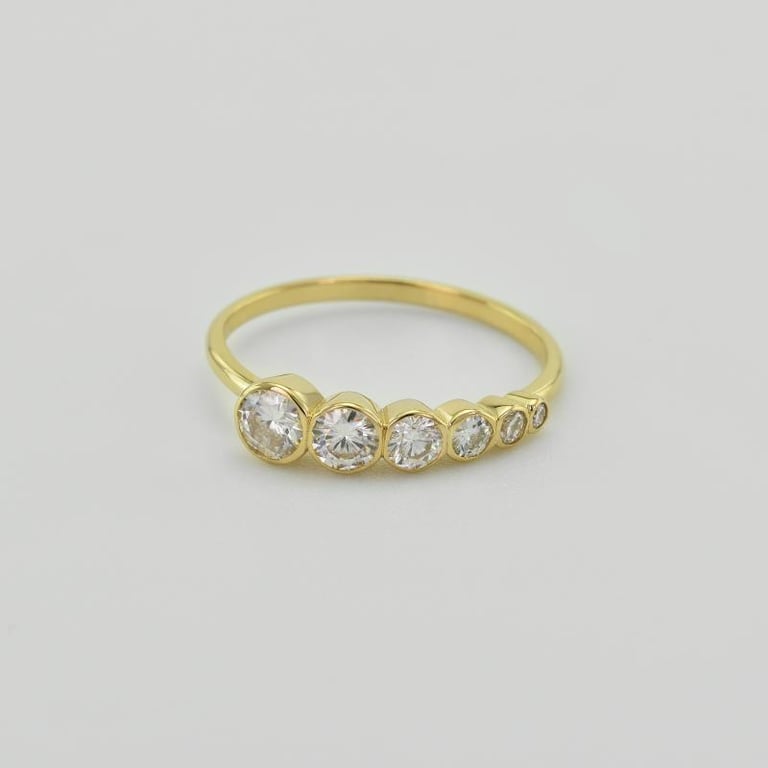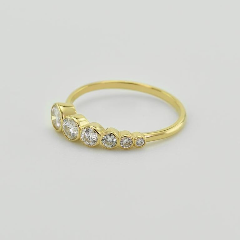 • der Ring in Gelbgold hat sechs unterschiedlich große Diamanten in einer sicheren Lünettenfassung