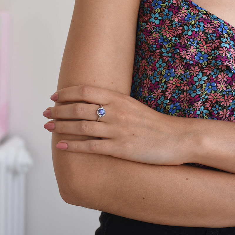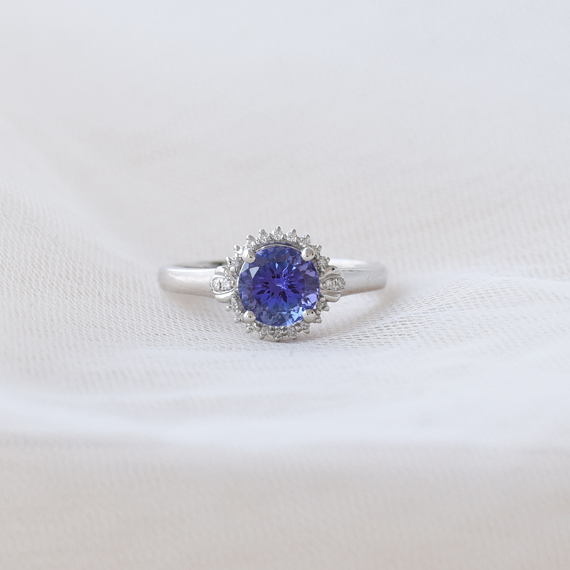 • der natürliche Tansanit wird von ganze 22 Diamanten umgeben