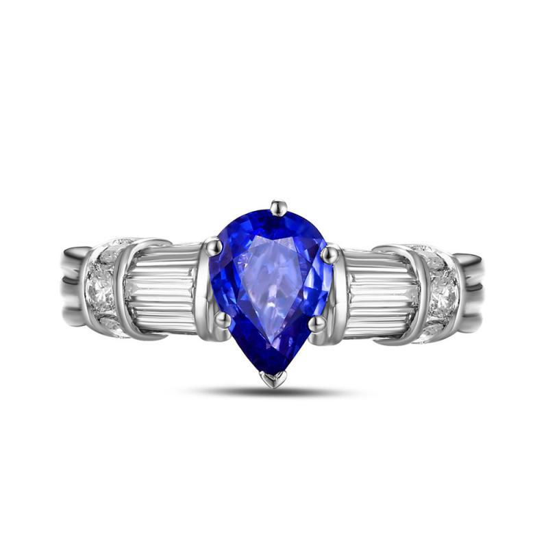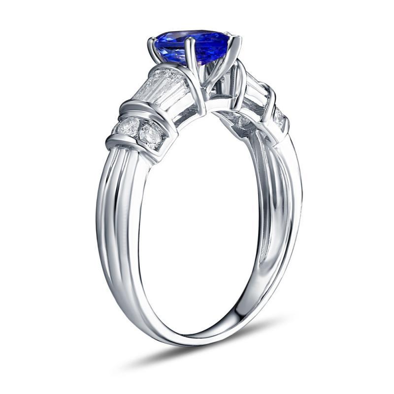 • die dunkle Farbe des Tansanits wird vom Feuer der weißen Diamanten perfekt kontrastiert