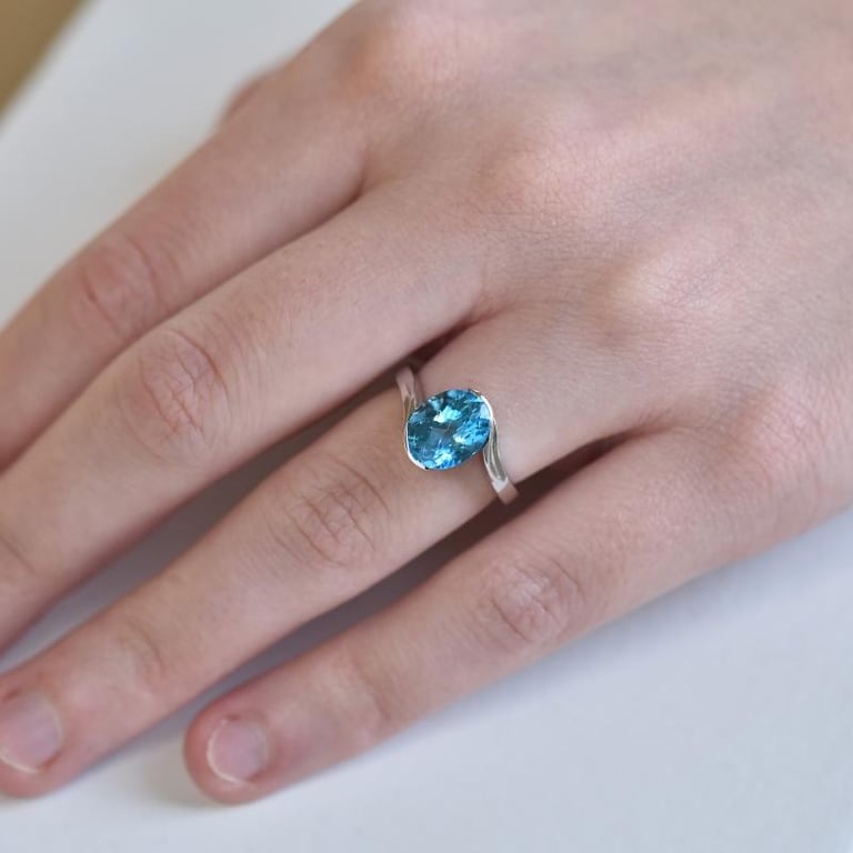 • kleine blaue Lichter strahlen aus dem ovalen Topas und werden Ihnen den Atem rauben
