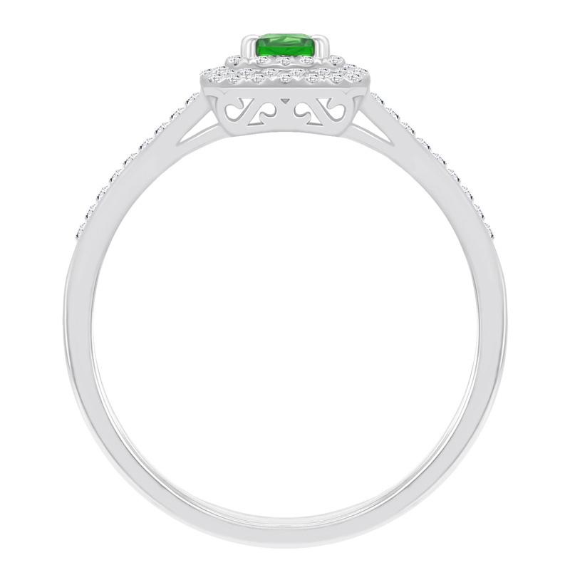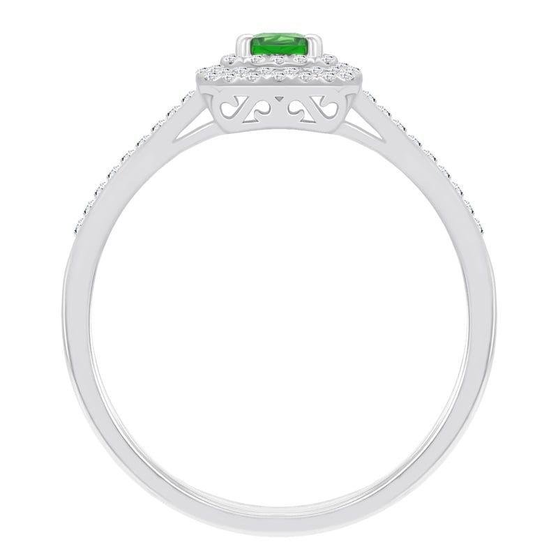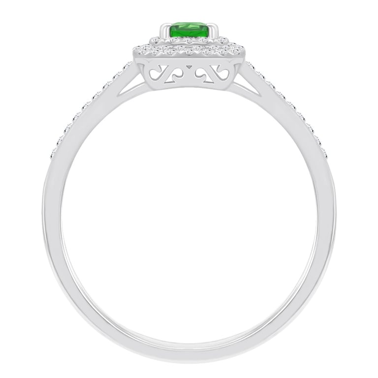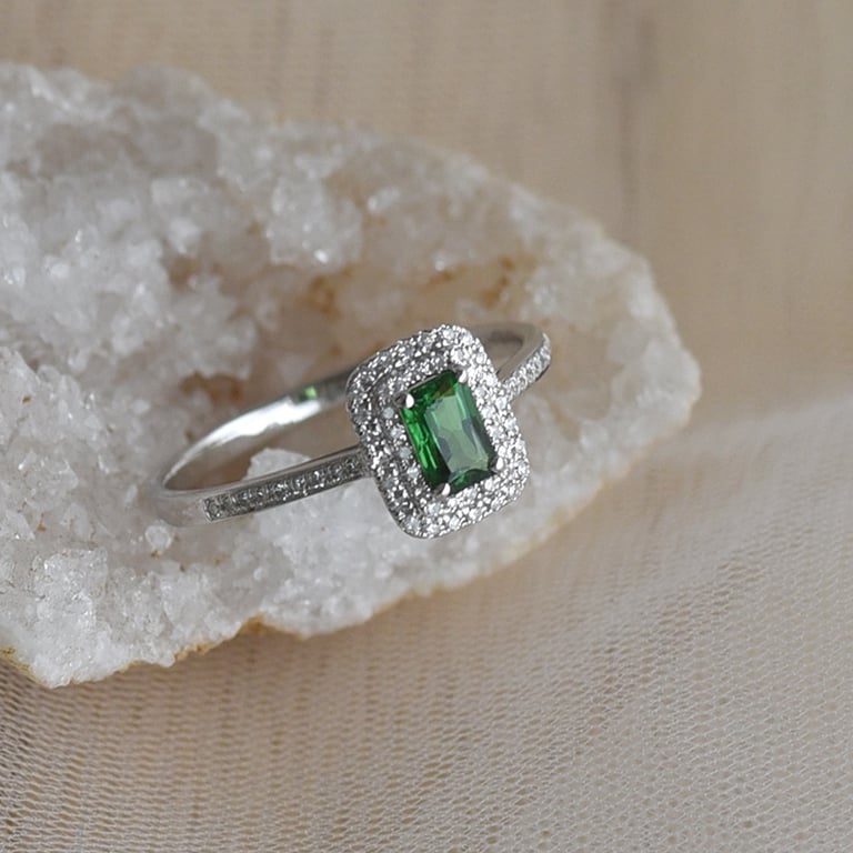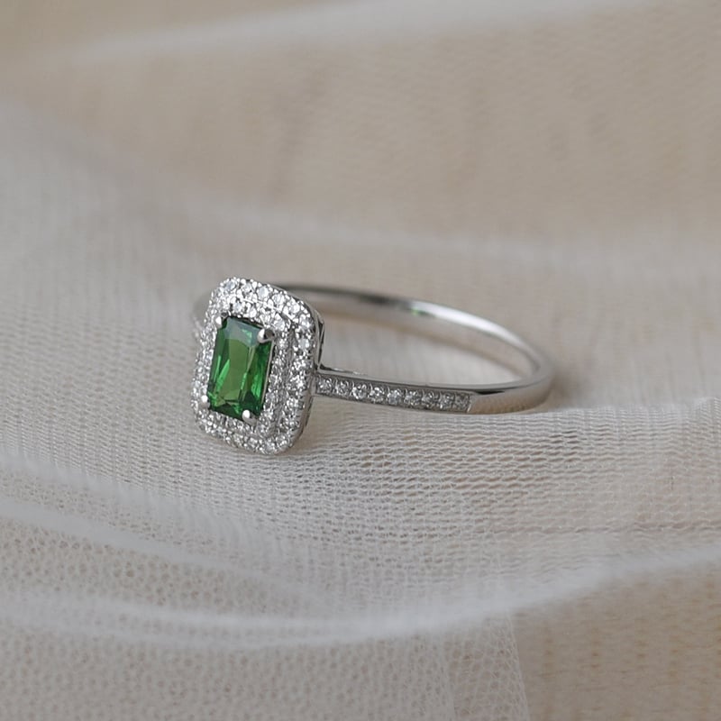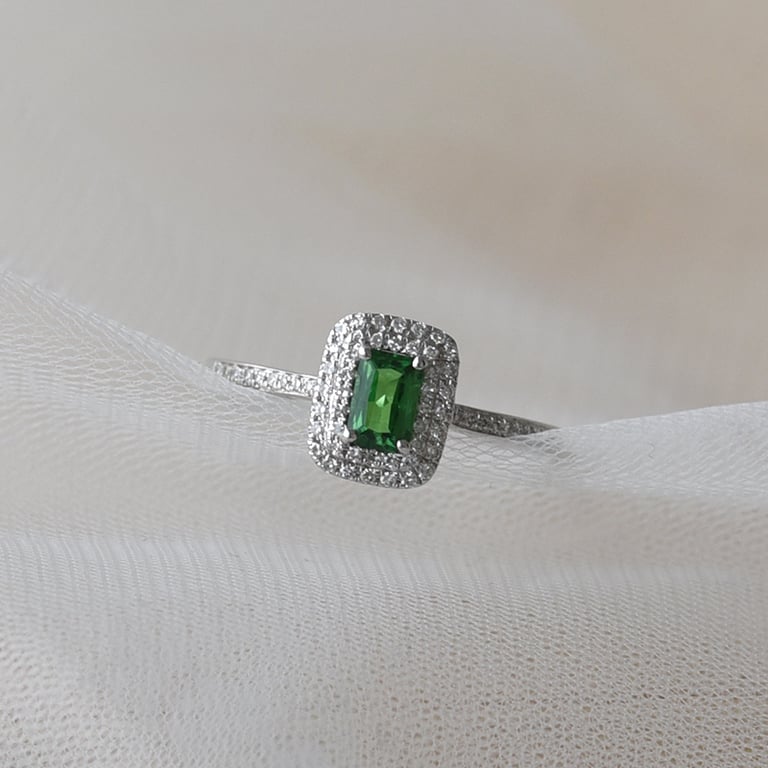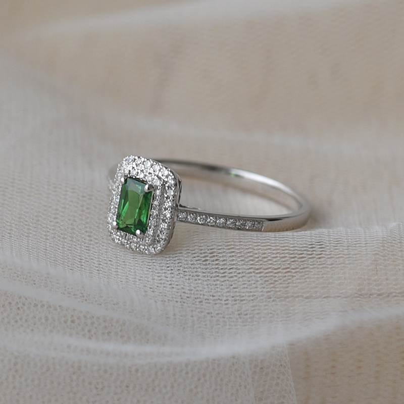 • der Tsavorit erstrahlt im Ring im klaren, leuchtenden Grün