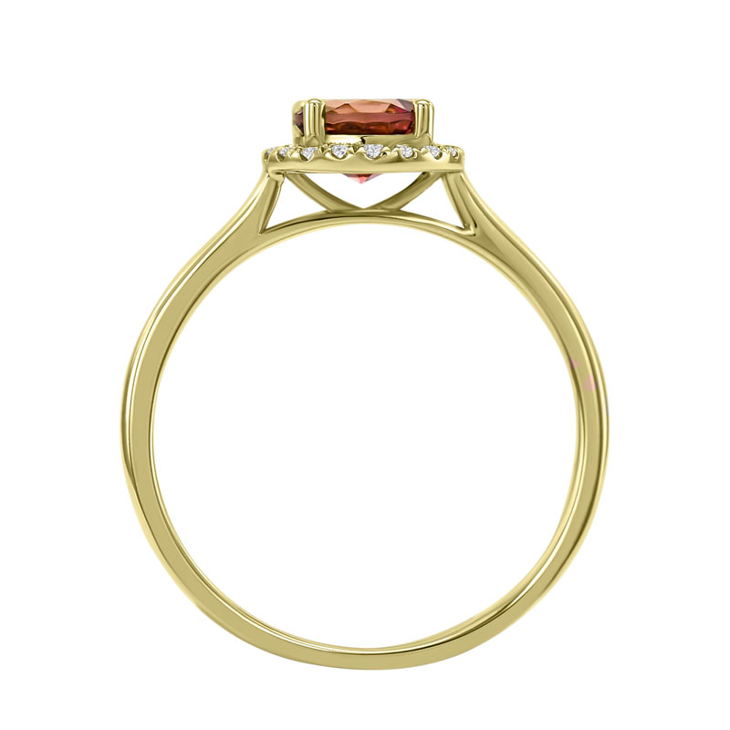 • Ring mit rundem rosa Turmalin, der in Diamanten gefasst ist