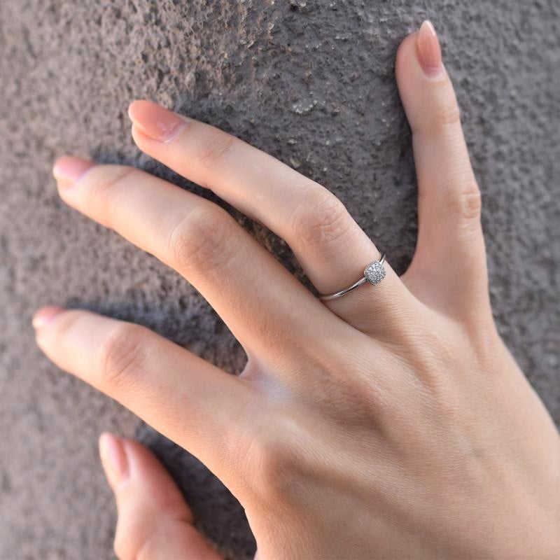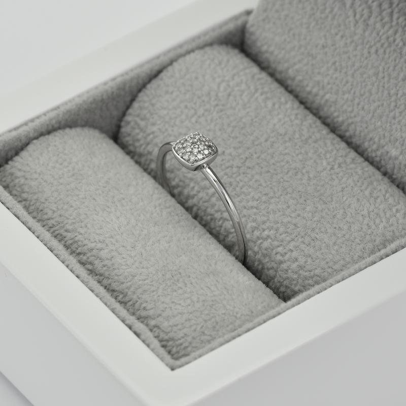 • ein eleganter Ring voller Diamanten in einer eckigen Form