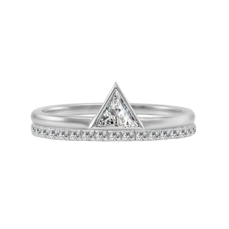Goldset von Eternity Ring und Ring mit Trillion-Diamant Hylia