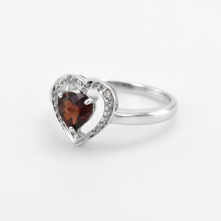Granat-Herz in einem goldenen Ring mit Diamanten Liola