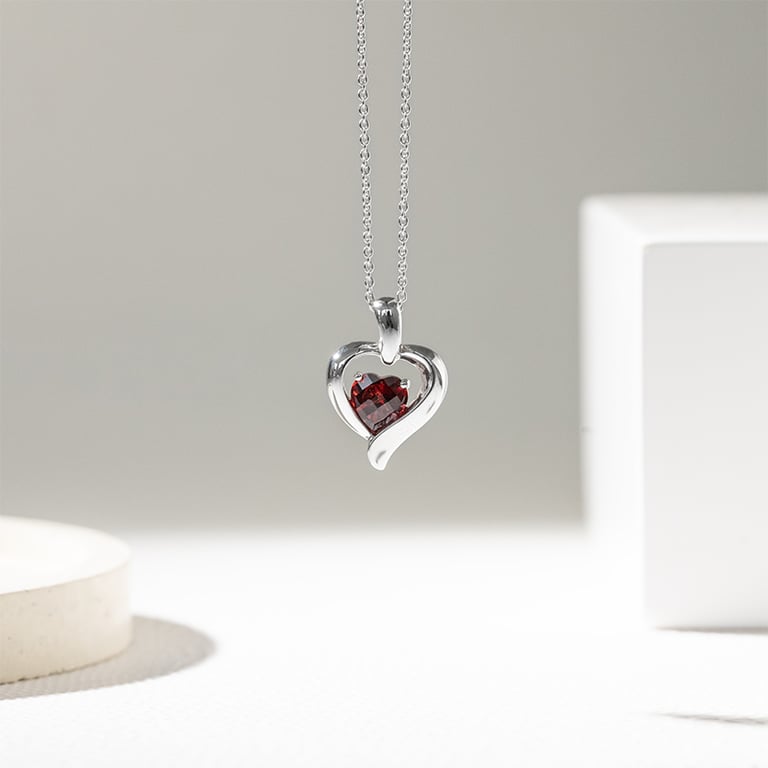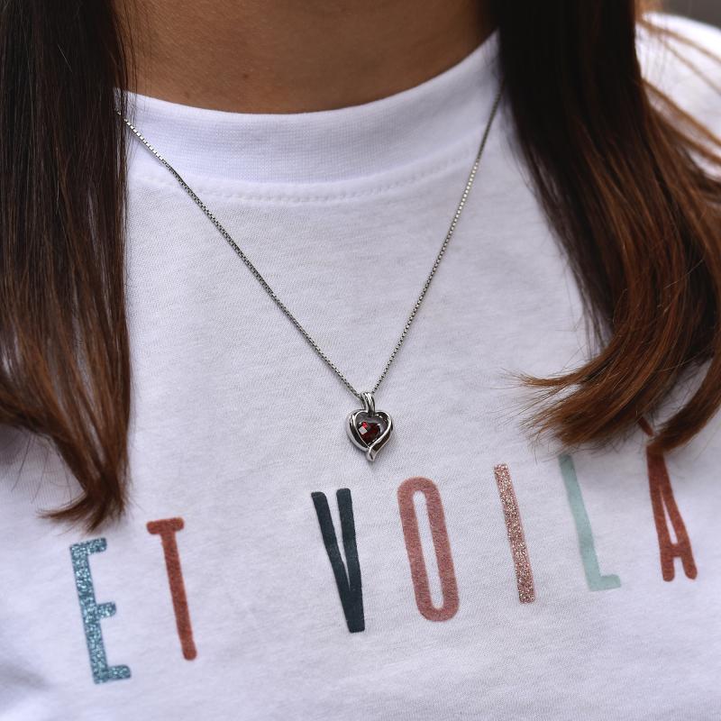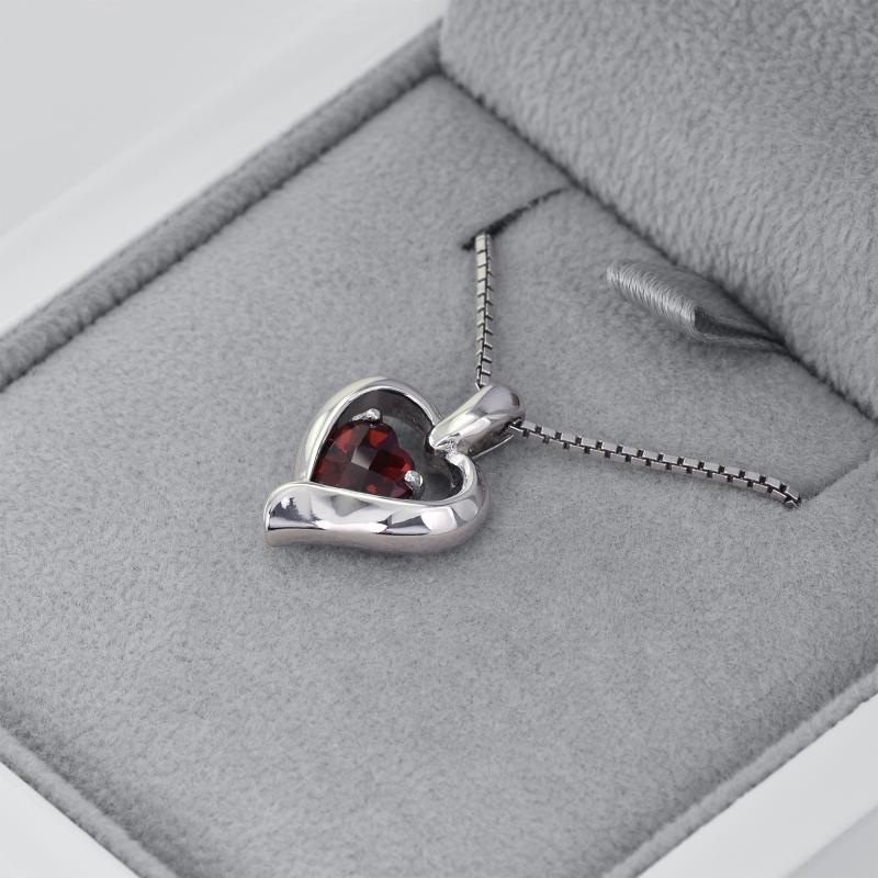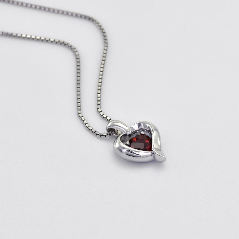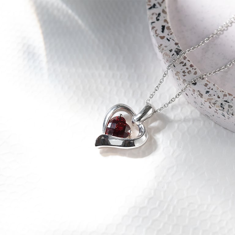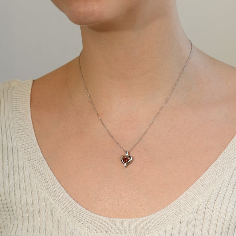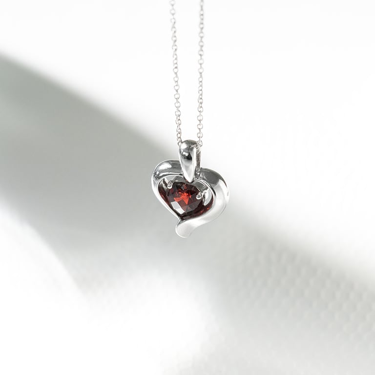 Granat in Herzform im silbernen Herz Lovelyn