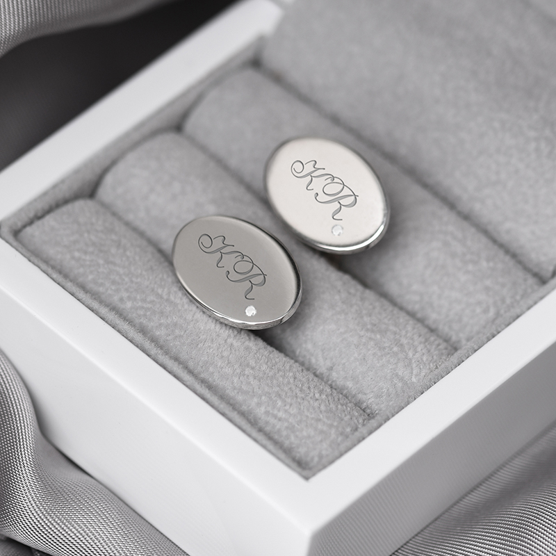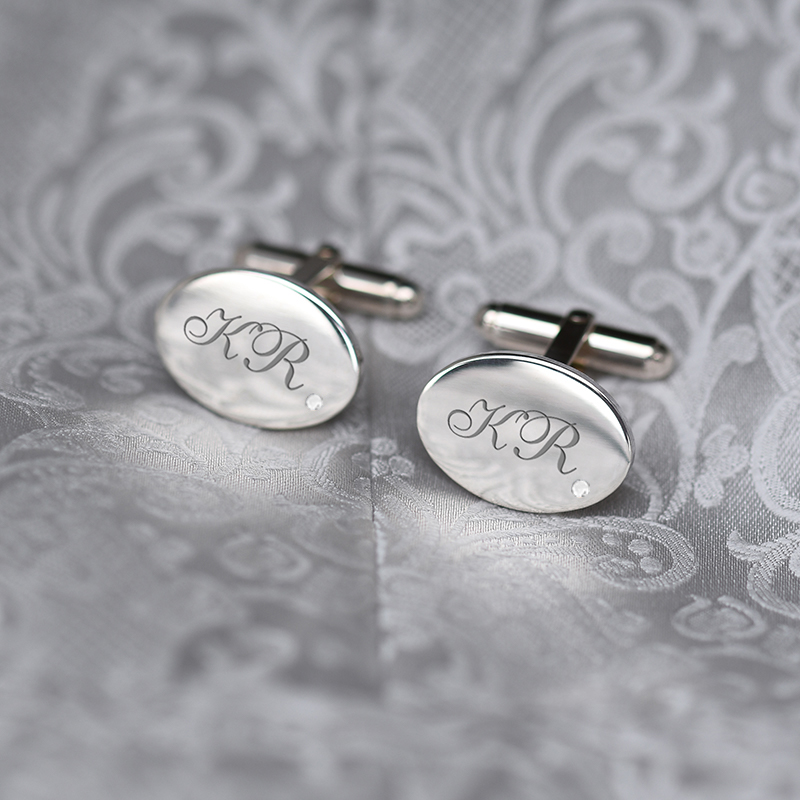 Gravierte Manschettenknöpfe in Silber mit Diamanten Hadar