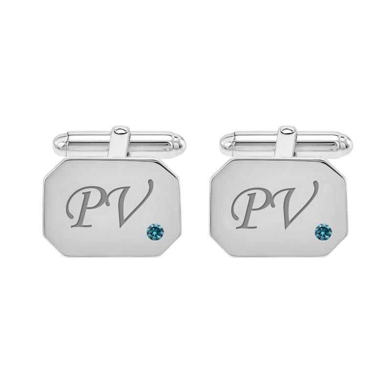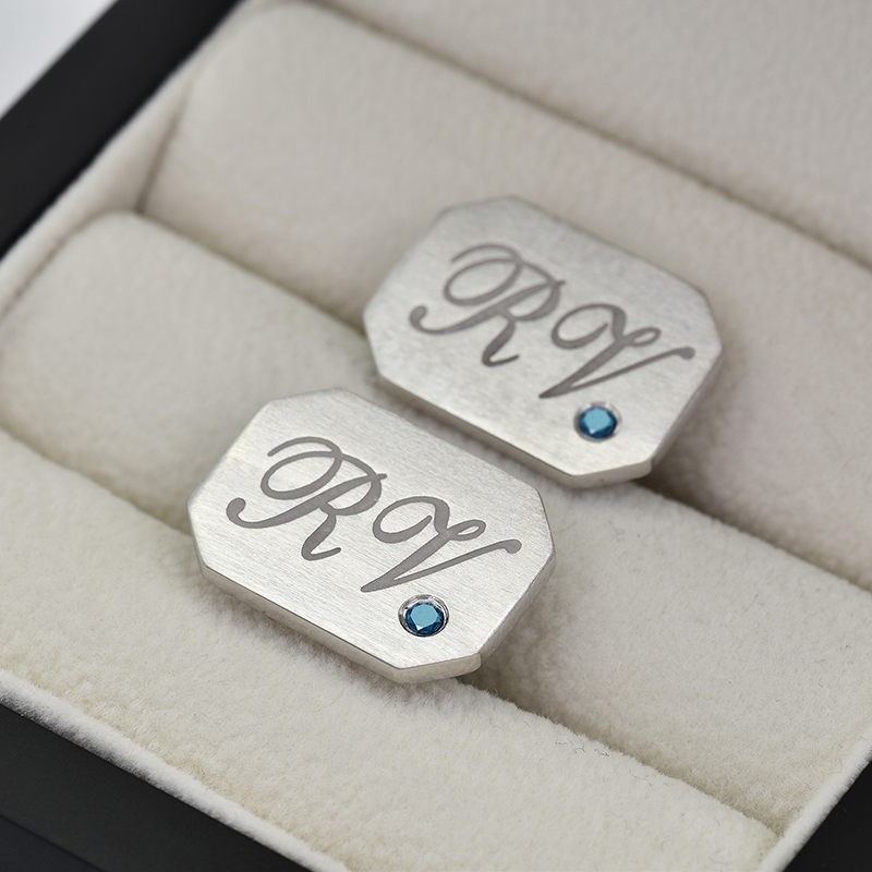 Gravierte, silberne Manschettenknöpfe mit blauen Diamanten Valetta