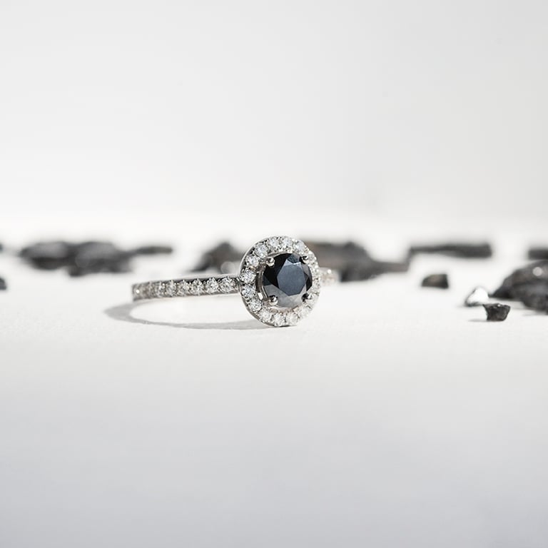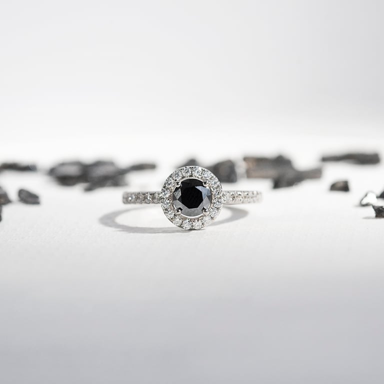 Hallo-Ring mit schwarzem Moissanit und Lab Grown Diamanten Kerau