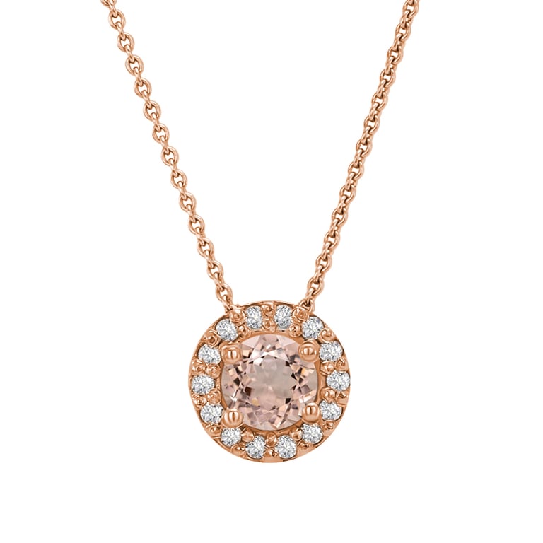• in einem Goldanhänger, schimmert Morganit sanft in seinen Rosatönen