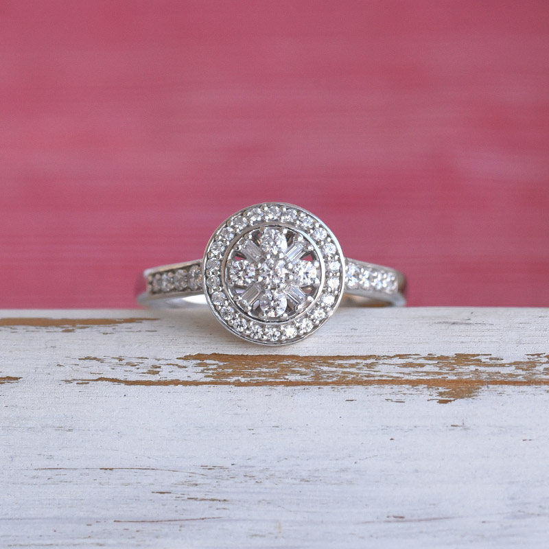 Halo-Ring besetzt mit glänzenden Diamanten Adelina