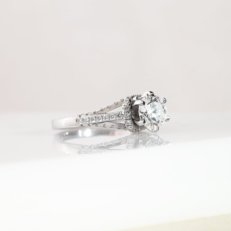 • Weißgoldring, der dank seiner reichen Fassung in alle Richtungen glänzt