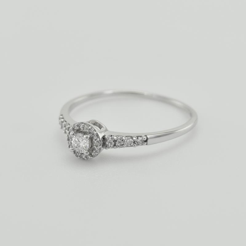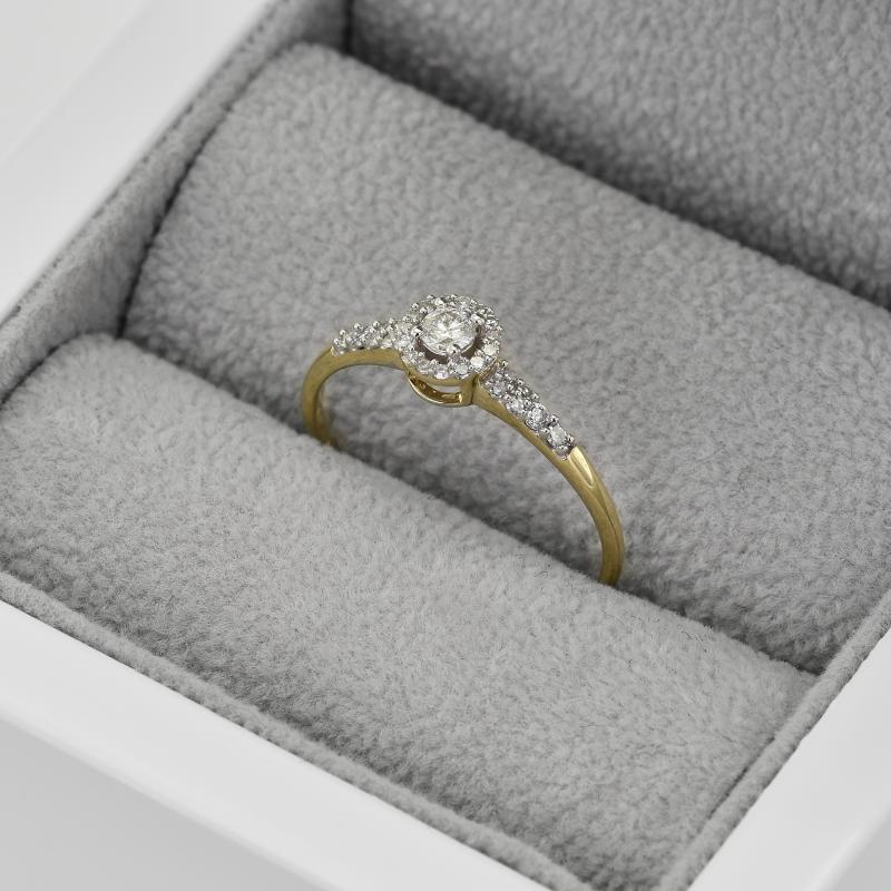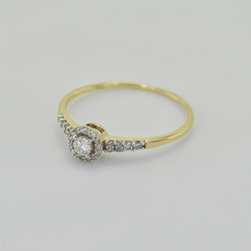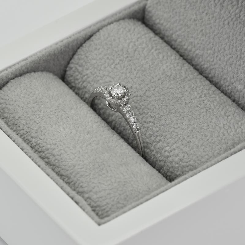 • diesen Ring im Halostil verzieren auch Diamanten auf der Ringschiene