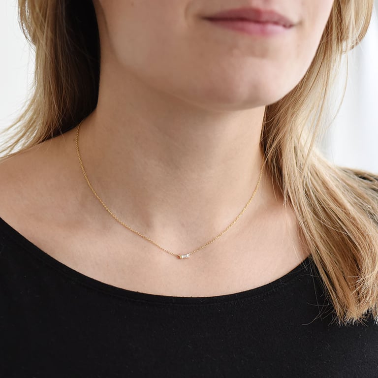 Halskette aus Gold mit weißem Saphir mit Baguette-Form Sharly
