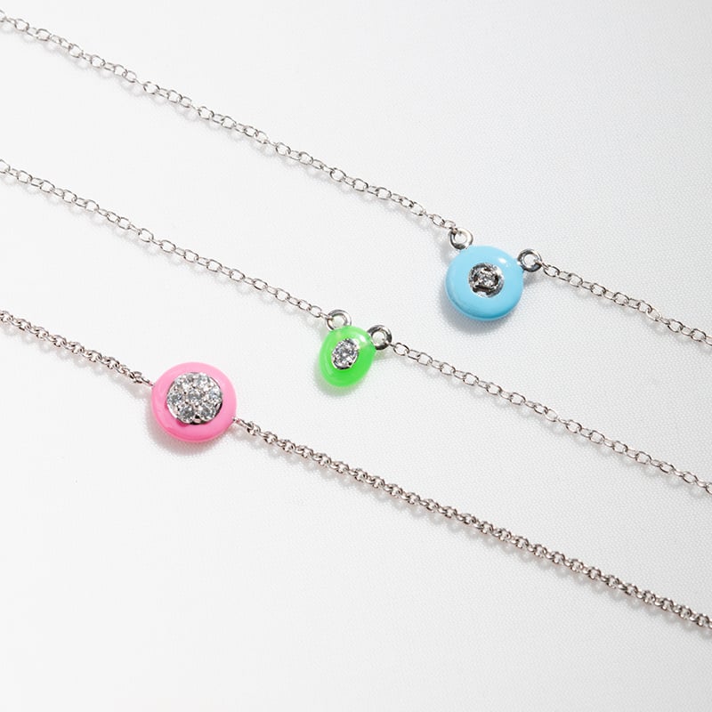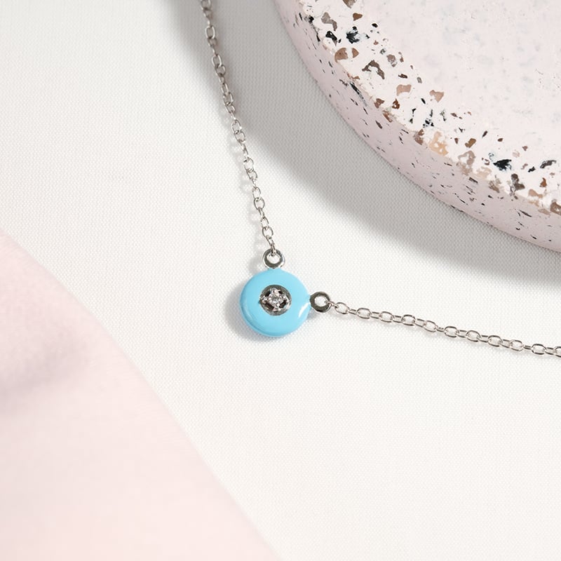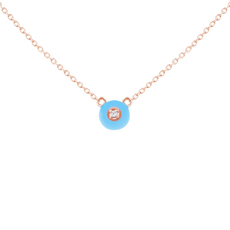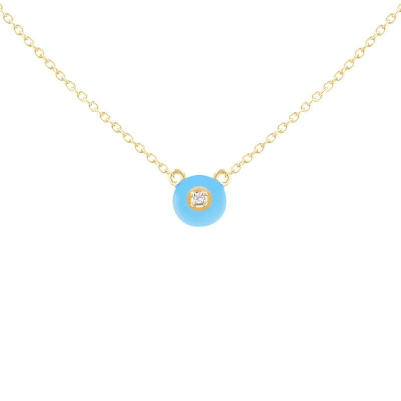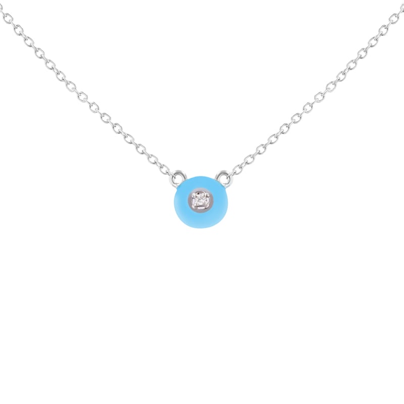 • der leuchtend blaue Halskette ist mit einem im Labor gezüchteten Diamanten akzentuiert