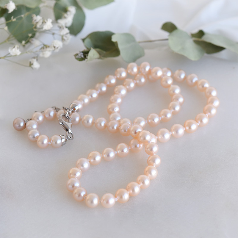 Halskette aus pfirsichfarbenen Perlen Casimiro