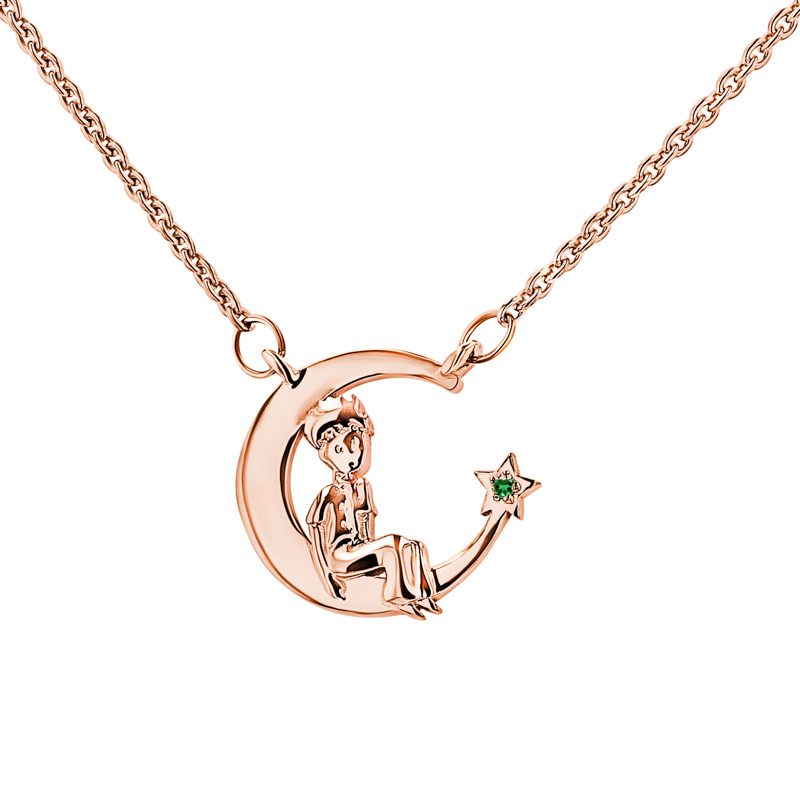• die bezaubernde Halskette mit dem Kleinen Prinzen, der auf der Mondsichel sitzt