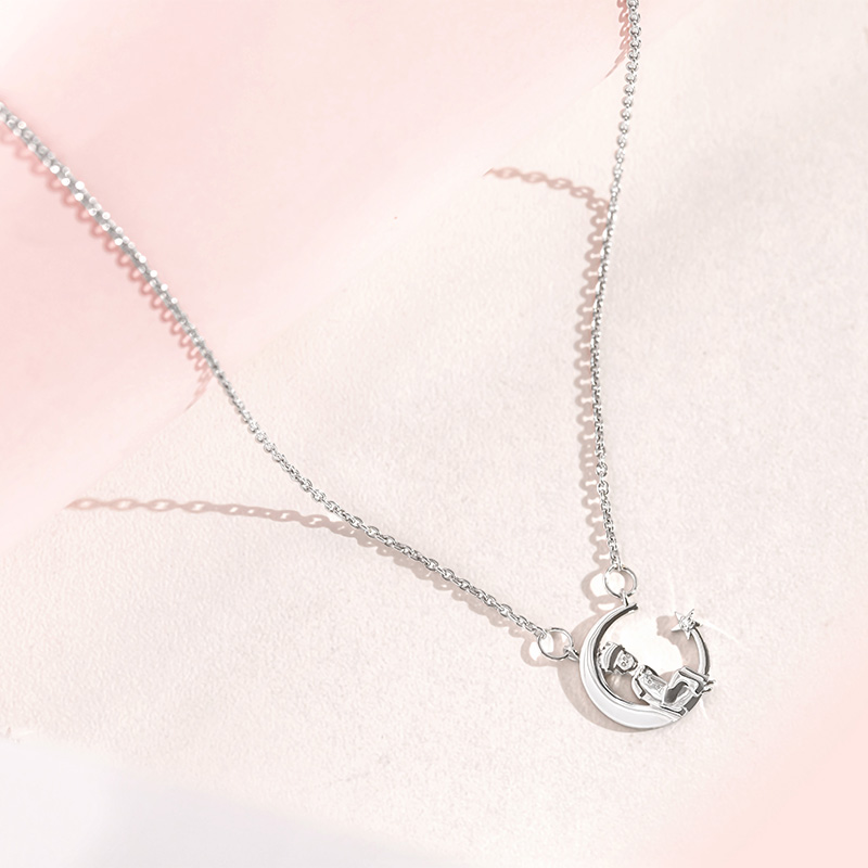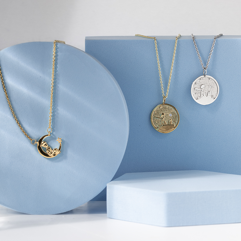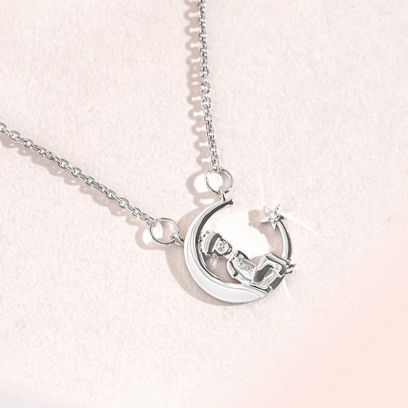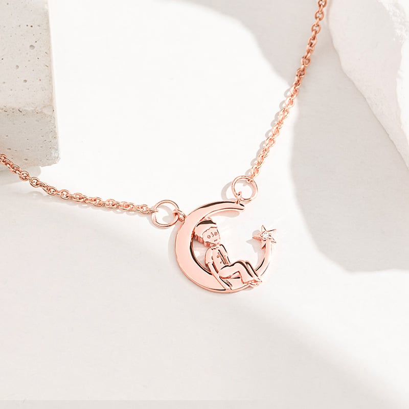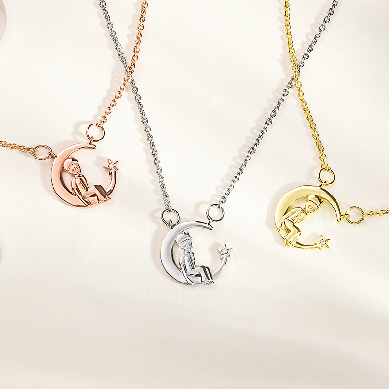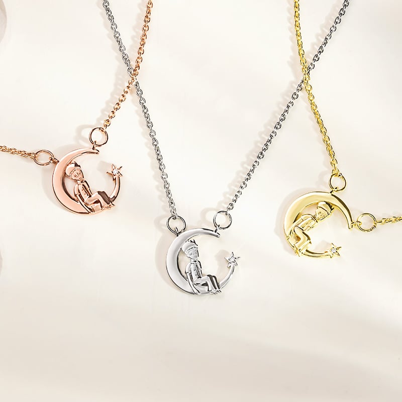 • die bezaubernde Halskette mit dem Kleinen Prinzen, der auf der Mondsichel sitzt