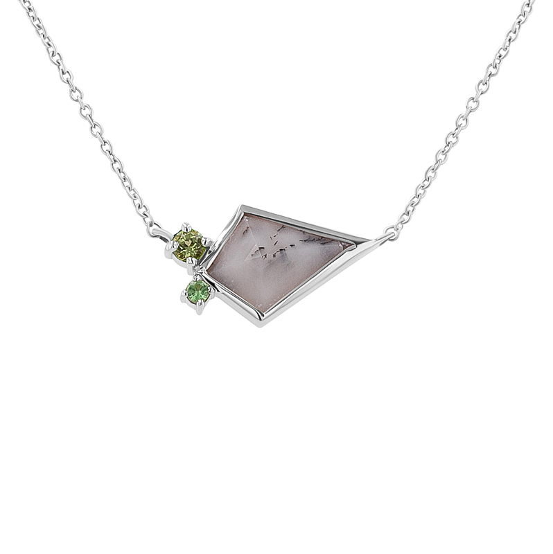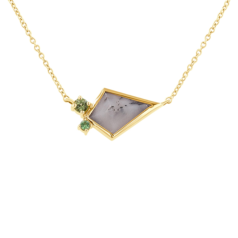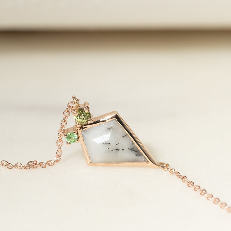 Halskette mit dendritischem Opal, Olivin und Tsavorit Granat Milly
