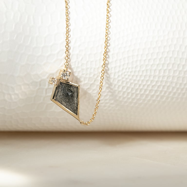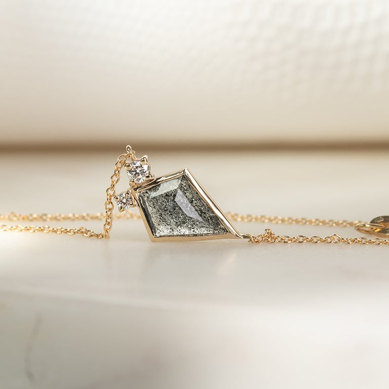 Halskette mit dendritischem Quarz und Diamanten Milly
