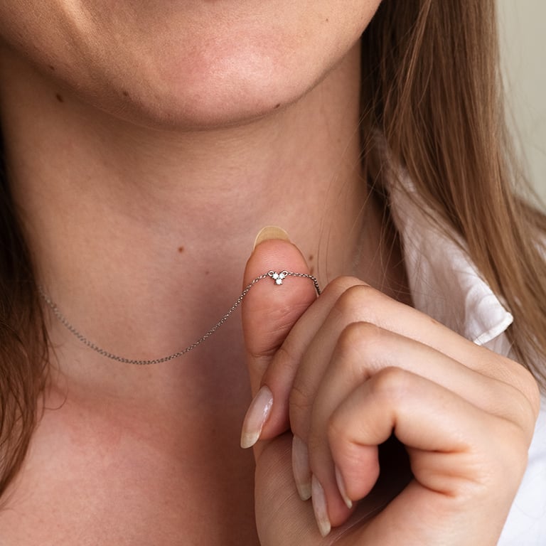 • eine zarte Kette, die von einem Trio funkelnder Lab Grown Diamanten dominiert wird