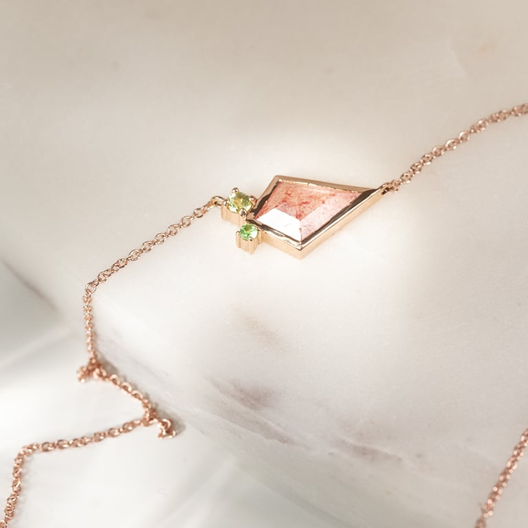 Halskette mit erdbeerrotem Achat, Olivin und Tsavoritgranat Milly