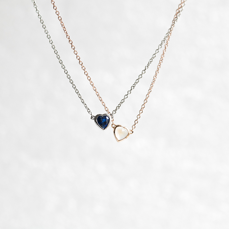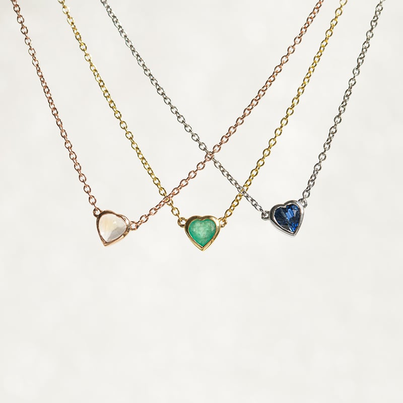 • bezaubernde Halskette aus recyceltem Gold oder Platin mit einem herzförmigen Edelstein
