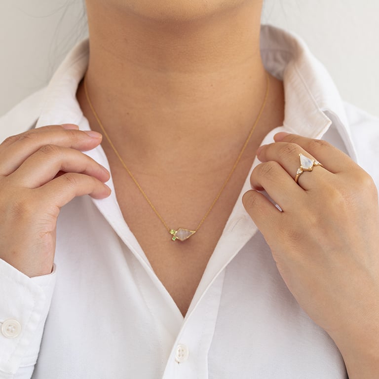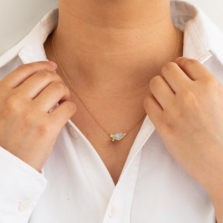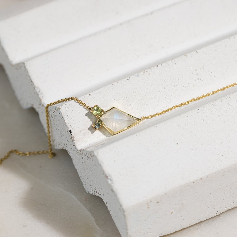 Halskette mit Mondstein, Olivin und Tsavoritgranat Milly