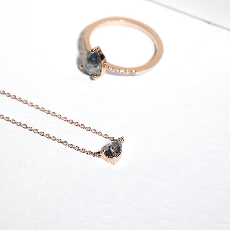 Halskette mit Salt and Pepper Diamant in Birnenform Maliah