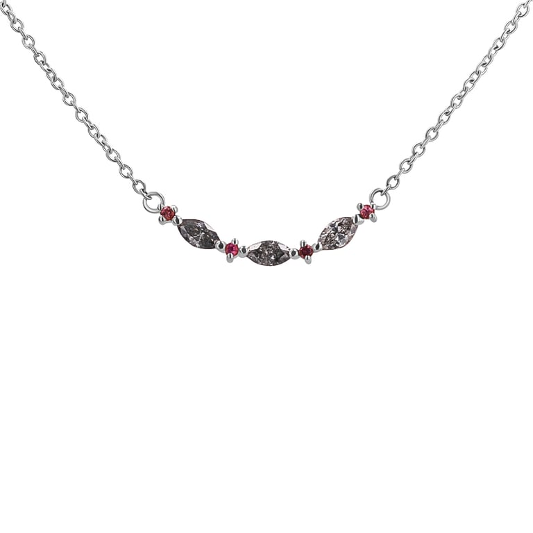 Halskette mit Salt and Pepper Diamanten in Marquise Form und Turmalinen Milli