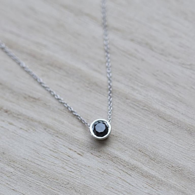 • dieser einzigartige schwarze Diamant, geschmackvoll in eine feine Kette eingefasst, ist das richtige Juwel für Sie