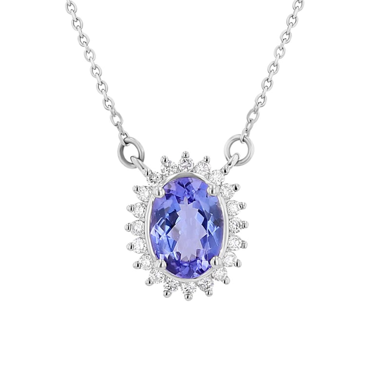 • ein wunderschöner Anhänger aus Weißgold, dem ein ovaler Tansanit dominiert