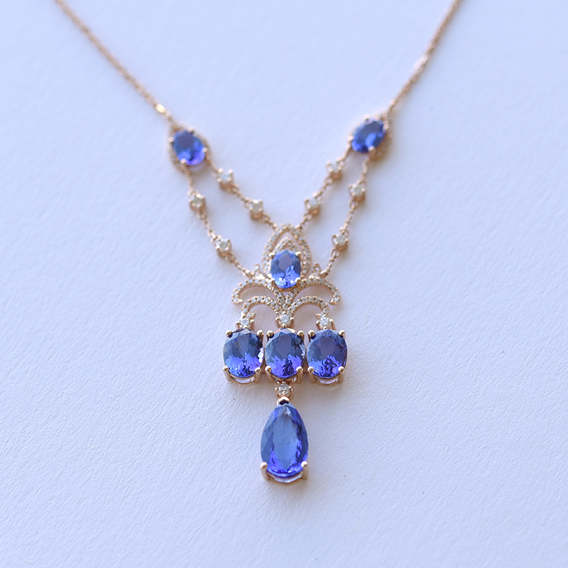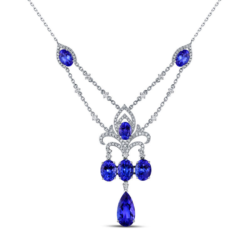 • Tansanite in tiefem Blau sind hier mit Diamanten zu einem wunderbaren Halsschmuck verarbeitet