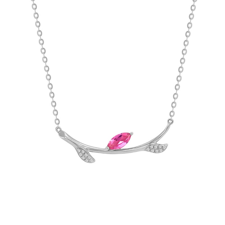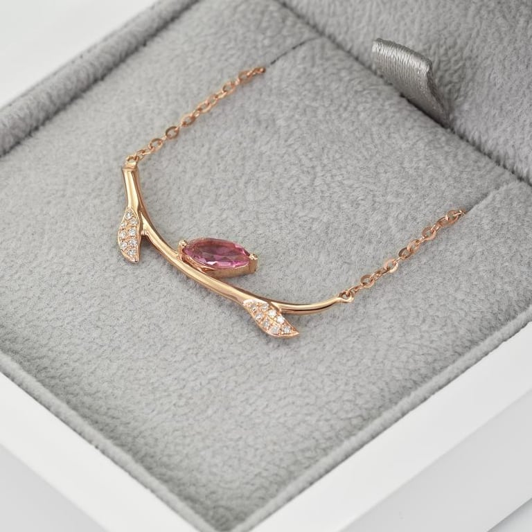 • raffinierter Anhänger in Form eines Zweigleins mit einer rosa Turmalinknospe