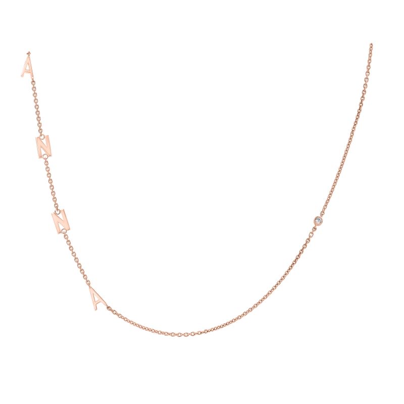 Halskette mit vier Buchstaben Ihrer Wahl und Diamanten Lupe
