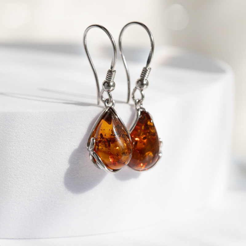 • der baltische Bernstein schmückt die Ohrringe