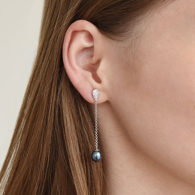 • elegante silberne Ohrringe mit schwarzen Perlen in Tropfenform