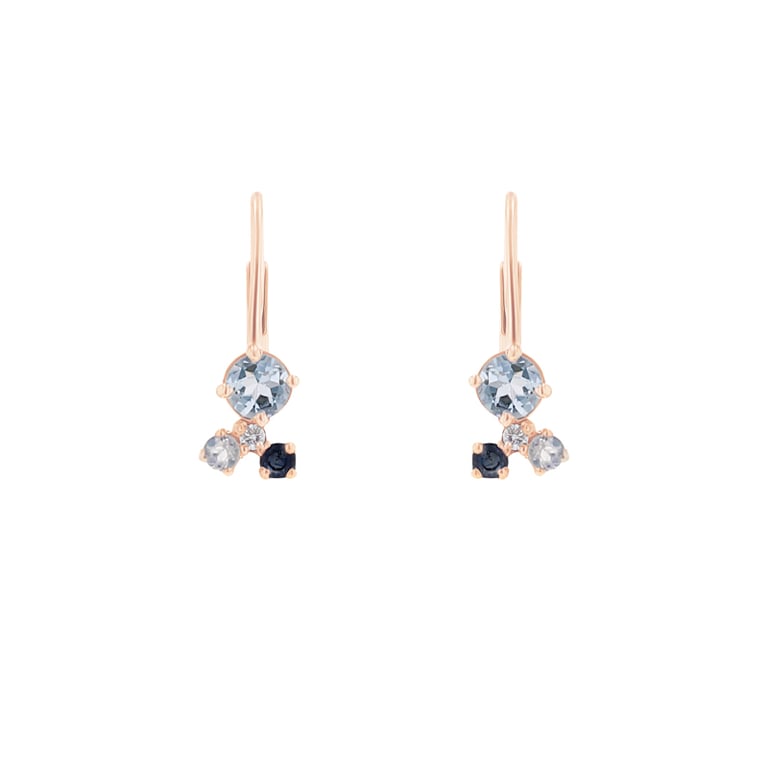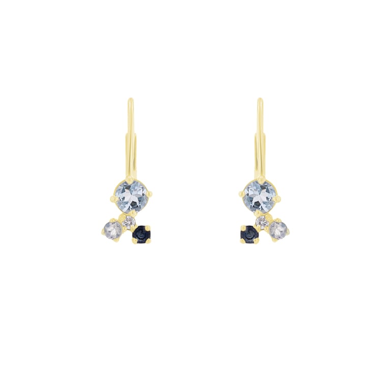 Hängeohrringe mit Mondstein, Aquamarin, Saphir und einem Diamanten Kerrie