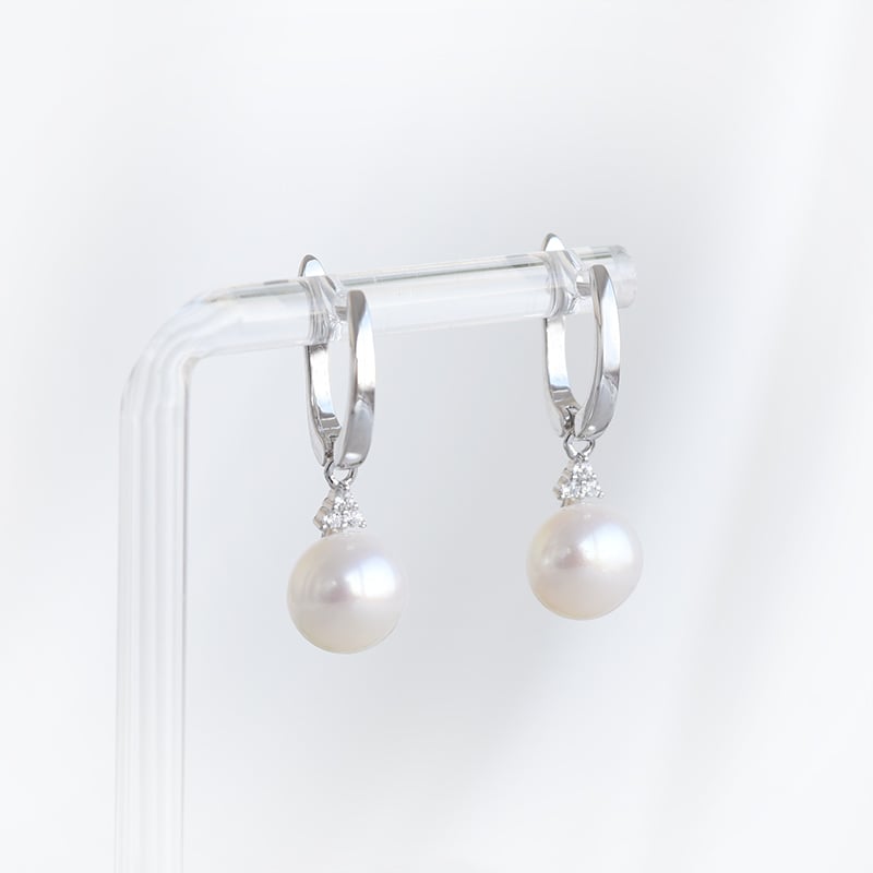 • traditionelle weiße Perlen werden von einem Trio von kubischen Zirkonia gehalten