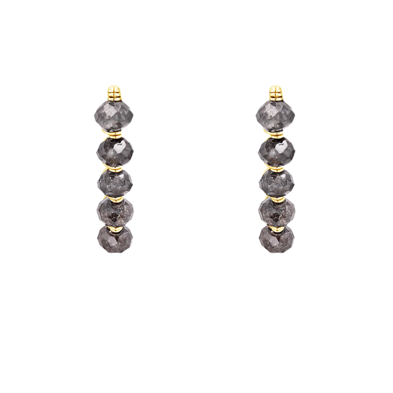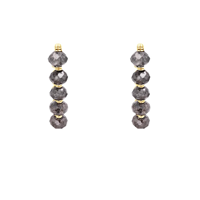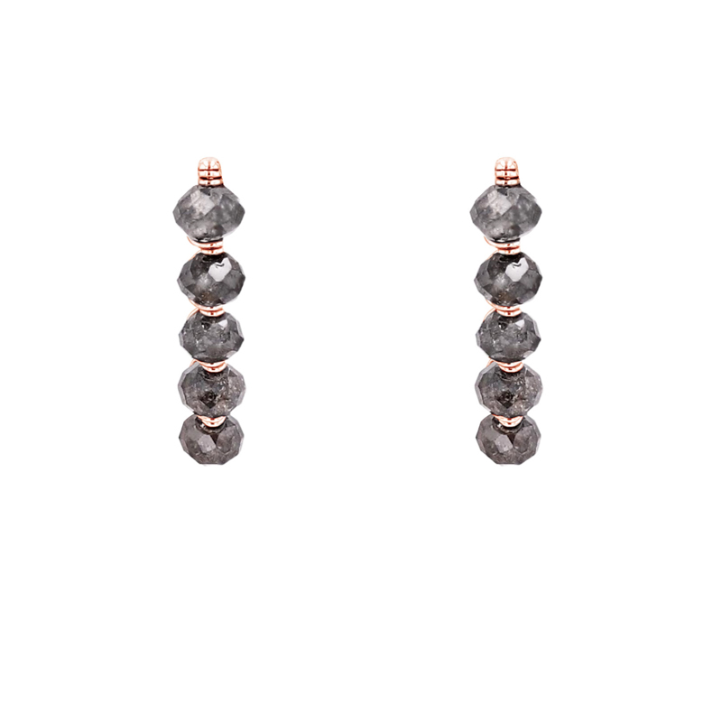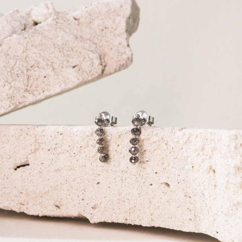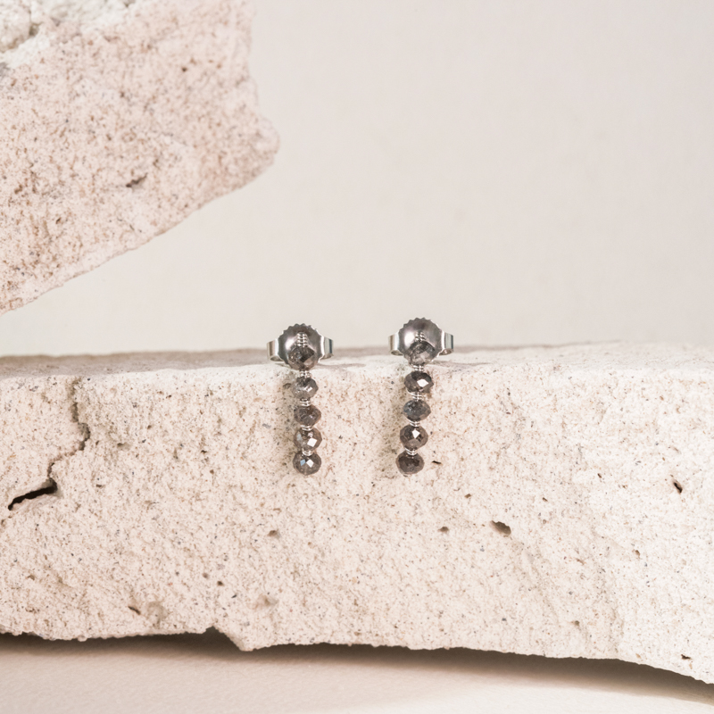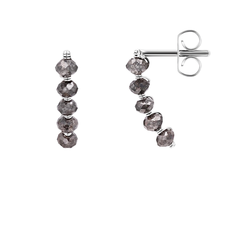 • jeder Ohrring ist mit fünf runden Salt and Pepper Diamanten besetzt
