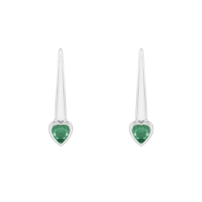 • elegantes flaches Band aus recyceltem Gold oder Platin, verbunden mit einem winzigen herzförmigen Smaragd