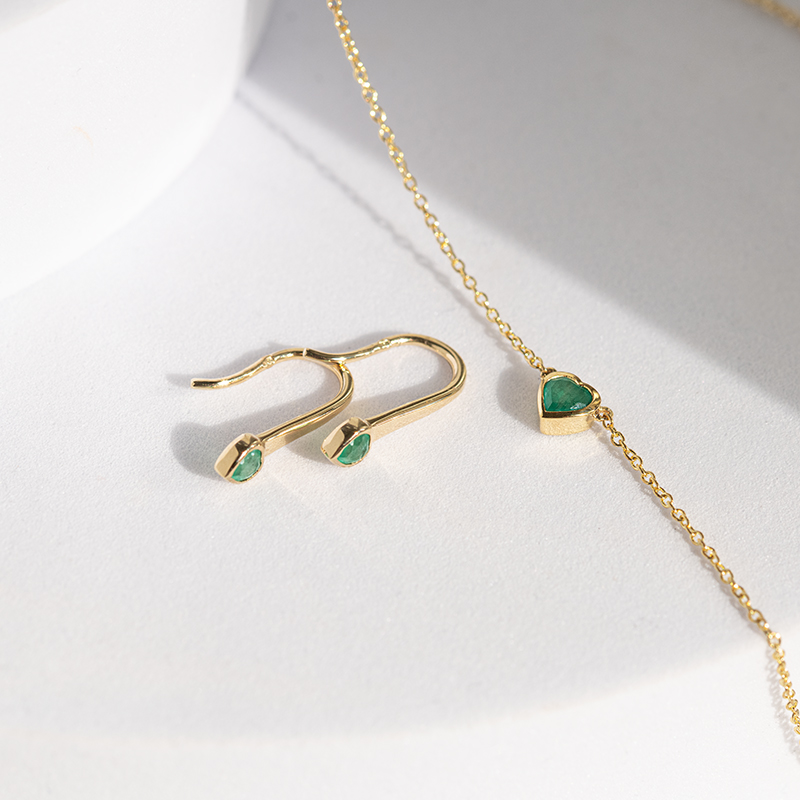 Hängeohrringe mit Smaragd Herzen Levy
