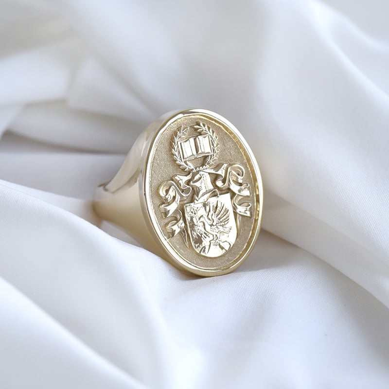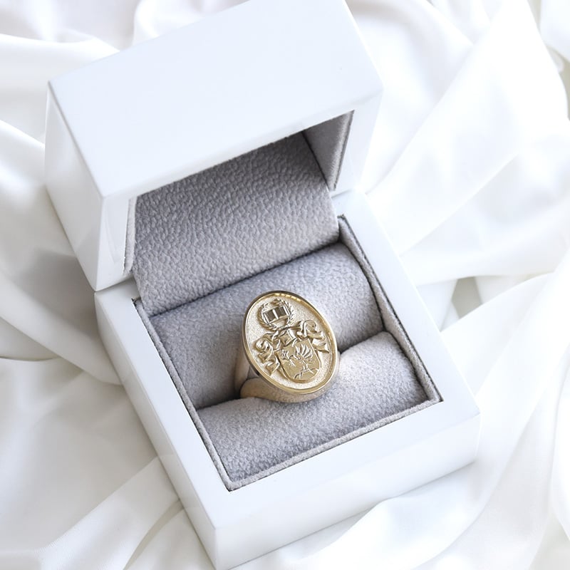 • Goldring, der nach Ihren Vorgaben von Hand auf 19x25 mm graviert werden kann