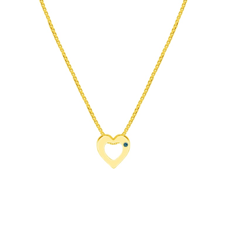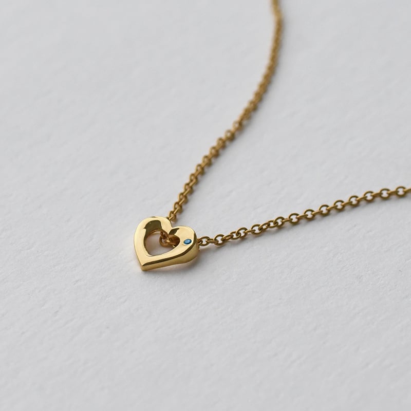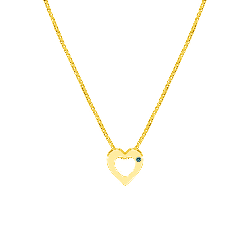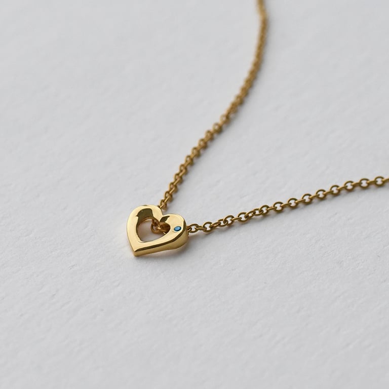 • der Anhänger aus Silber ist in Herzform und mit einem strahlend blauen Diamanten verziert