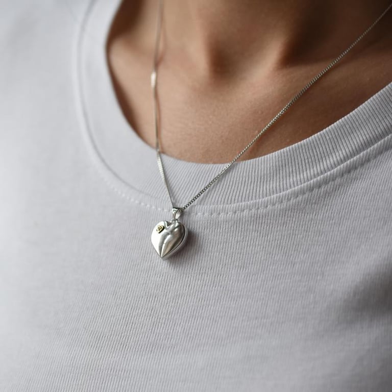 • rhodinierter Silberschmuck mit einem vergoldetem Detail in Form eines kleinen Herzens auf der Vorderseite