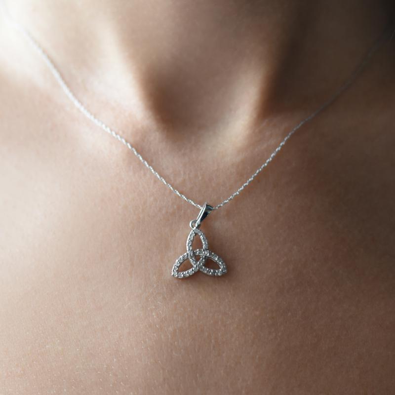 • der mit Diamanten besetzte Anhänger ist in der Form eines keltischen Knotens und auch ein wunderbarer Talisman