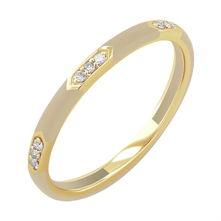 • Gelbgold und beigefarbene Keramik harmonieren gut miteinander und lassen die Diamanten besonders strahlen